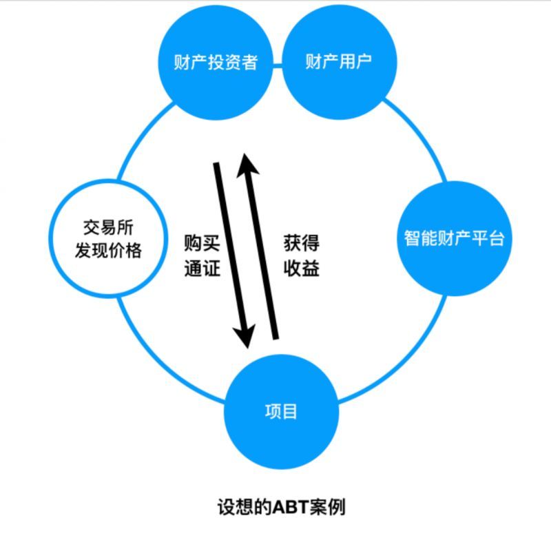 如圖所示,在 ABT 場(chǎng)景中,前四種場(chǎng)景中的互聯(lián)?平臺(tái)將被智能財(cái)產(chǎn)平臺(tái)所取代,它的角色是將資產(chǎn)通證化與將資產(chǎn)智能化。