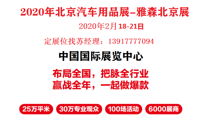 2020年2月18-21日雅森北京展,25萬平方米的面積創(chuàng)全球領先的汽車后服務展出規(guī)模,內(nèi)館和外館全部滿館,展品結構進一步擴大和優(yōu)化。