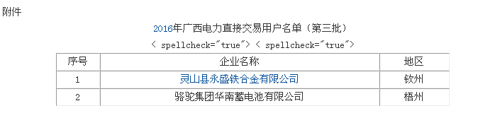 廣西:關(guān)于2016年電力直接交易準(zhǔn)入名單( 第三批)的公示