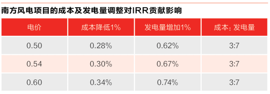 針對北方風(fēng)電場和南方風(fēng)電場的不同特點,曹志剛給出了具體的破局路徑:北方項目應(yīng)以降本為主,“通過擴(kuò)大項目規(guī)模,共用升壓站、接入送出系統(tǒng)、場內(nèi)道路等來拉低項目初始投資。”南方項目應(yīng)以提高發(fā)電量為主,“在目前電價情況下,成本降低1%對IRR影響約0.25%~0.34%,發(fā)電量增加1%對IRR影響約0.58%~0.74%,成本與發(fā)電量對IRR的貢獻(xiàn)影響比約為3:7。”