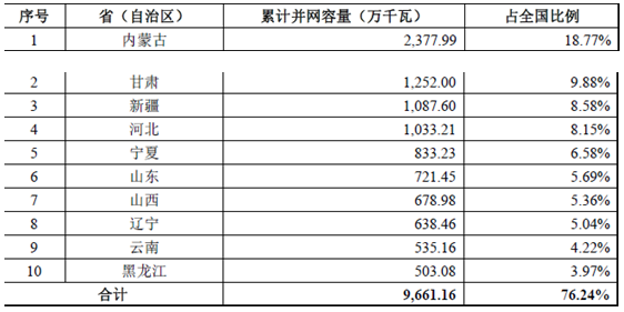 截至2015 年底,全國共有22 個(gè)省(區(qū))累計(jì)并網(wǎng)容量超過百萬千瓦,其中內(nèi)蒙古并網(wǎng)容量2,377.99 萬千瓦,居全國之首,甘肅和新疆分別以并網(wǎng)1,252.00萬千瓦和1,087.60 萬千瓦位居第二、三位,華北、東北、西北地區(qū)風(fēng)電并網(wǎng)容量累計(jì)約占全國風(fēng)電并網(wǎng)容量的79.5%。