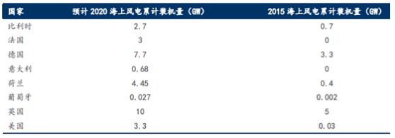 部分國家的海上風(fēng)電 2020 年預(yù)計裝機量