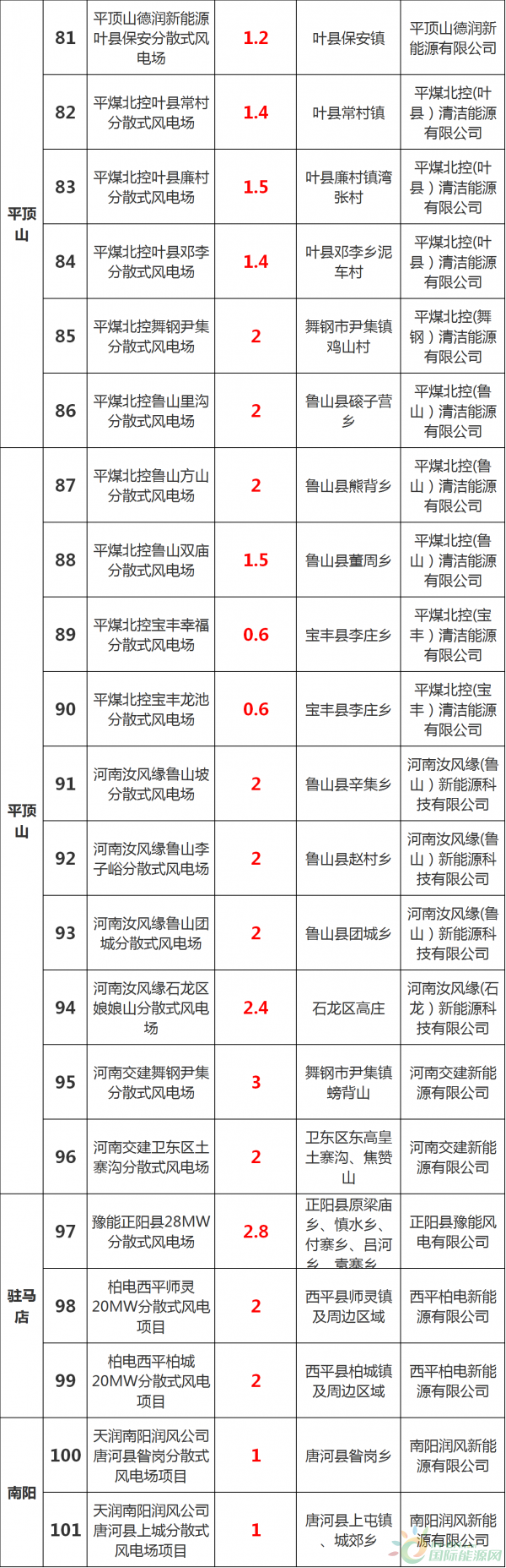 今天(12月6日),河南省發(fā)改委不發(fā)了《關(guān)于下達(dá)河南省十三五分散式風(fēng)電開(kāi)發(fā)方案的通知》以及河南省十三五分散式風(fēng)電開(kāi)發(fā)方案項(xiàng)目表。124個(gè)風(fēng)電項(xiàng)目,共計(jì)規(guī)模210 7萬(wàn)千瓦!濮陽(yáng)、洛陽(yáng)、平頂山、永城是規(guī)劃項(xiàng)目