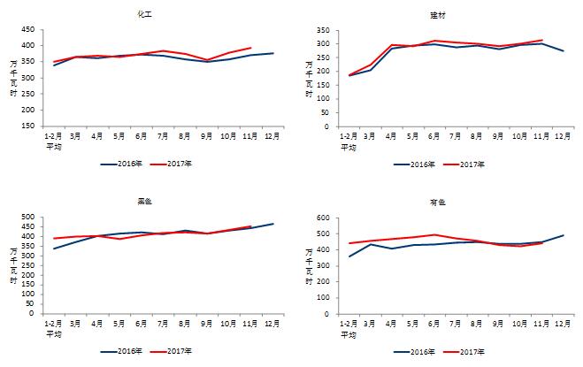 圖4 2016、2017年重點(diǎn)行業(yè)分月用電量情況