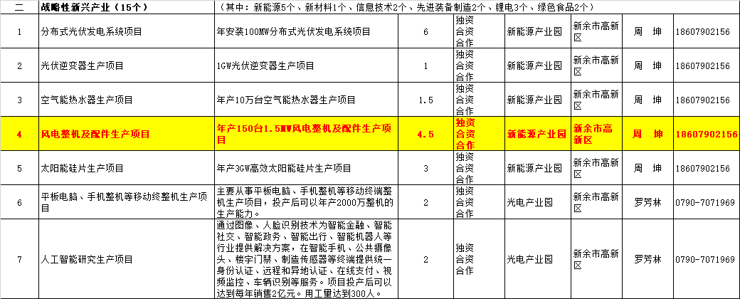 2.風(fēng)電整機(jī)及配件生產(chǎn)項(xiàng)目,該項(xiàng)目總投資金額4.5億元,年產(chǎn)150臺(tái)1.5MW風(fēng)電整機(jī)及配件生產(chǎn)項(xiàng)目。建設(shè)地點(diǎn)在新余市高新區(qū)。