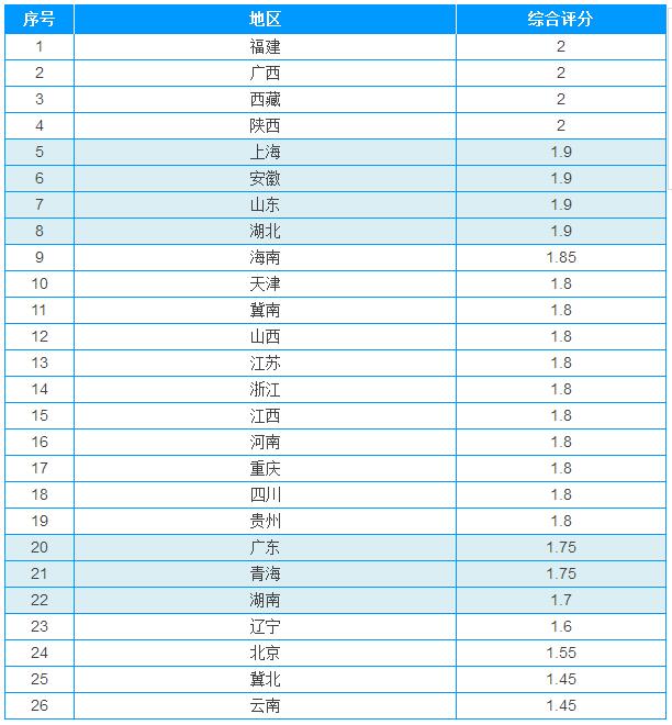 以上數(shù)據(jù)顯示,福建、廣西、上海、山東等沿海地區(qū)和安徽、湖北等中東部地區(qū)2017年開發(fā)綜合評分較高,開發(fā)潛力較大;北京、冀北地區(qū)以及云南風(fēng)電開發(fā)綜合評分排名靠后,2017年風(fēng)電開發(fā)潛力較為有限。