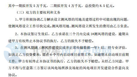 中閩能源今日發(fā)布公告稱,近日公司與福建省漳平市人民政府在漳平市就漳平市官田鄉(xiāng)風(fēng)電場(chǎng)項(xiàng)目投資開(kāi)發(fā)事宜簽署了《福建省漳平市官田鄉(xiāng)風(fēng)電場(chǎng)項(xiàng)目投資開(kāi)發(fā)框架協(xié)議》。項(xiàng)目擬分為一期和二期,其中一期擬開(kāi)發(fā)5萬(wàn)千瓦,二期擬開(kāi)發(fā)4萬(wàn)千瓦,總投資約8.5億元。