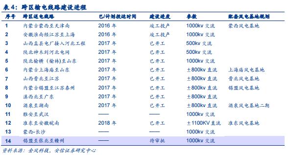 根據(jù)此前特高壓線路建設相關規(guī)劃,2016 年還有兩條特高壓線路已竣工投產,2017 年更是新增 8 條特高壓線路竣工投產,這 8 條線路中有 4 條對接了限電地區(qū)風電場,投運后將對內蒙古、山西、甘肅的風電消納問題產生積極影響。