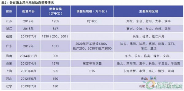 各省海上風(fēng)電規(guī)劃動(dòng)態(tài)調(diào)整情況