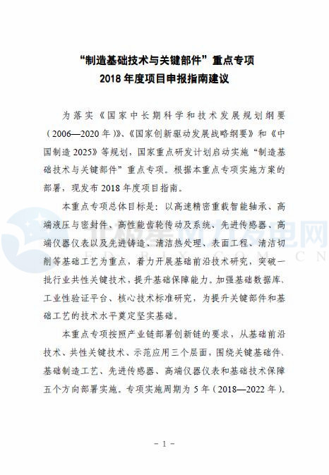 4.“制造基礎(chǔ)技術(shù)與關(guān)鍵部件”重點(diǎn)專項(xiàng)2018年度項(xiàng)目申報(bào)指南建議