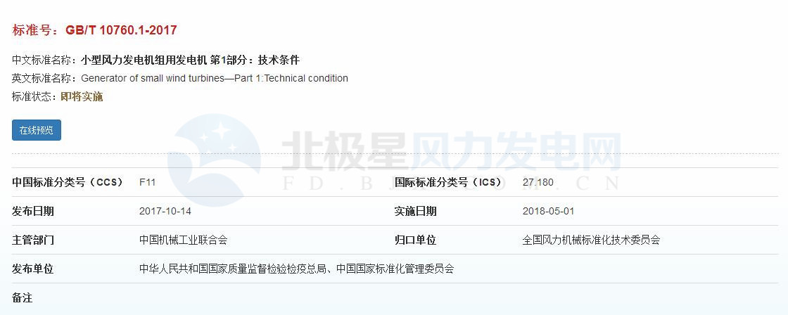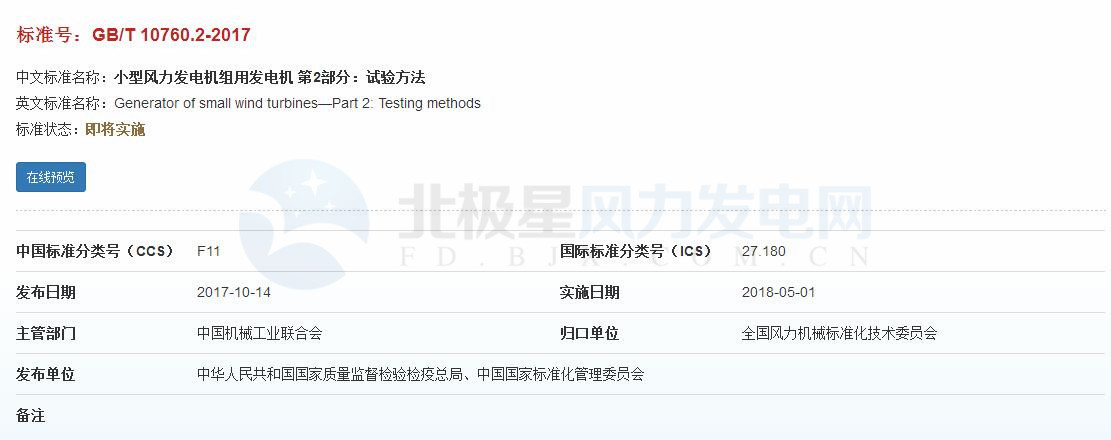 從國家標準化管理委員會獲悉,2018年2月1日起,《小型風力發(fā)電機組》、《風力發(fā)電機組驗收規(guī)范》2項風電標準已正式施行。另外,2018年5月1