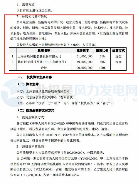 進軍運營領(lǐng)域!泰勝風(fēng)能將出資設(shè)立泰勝風(fēng)能(北京)科技發(fā)展有限公司