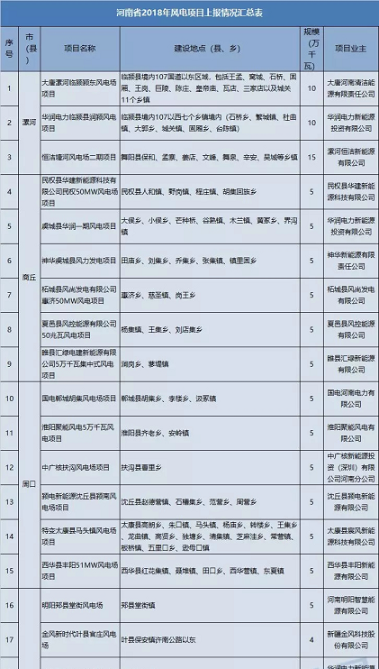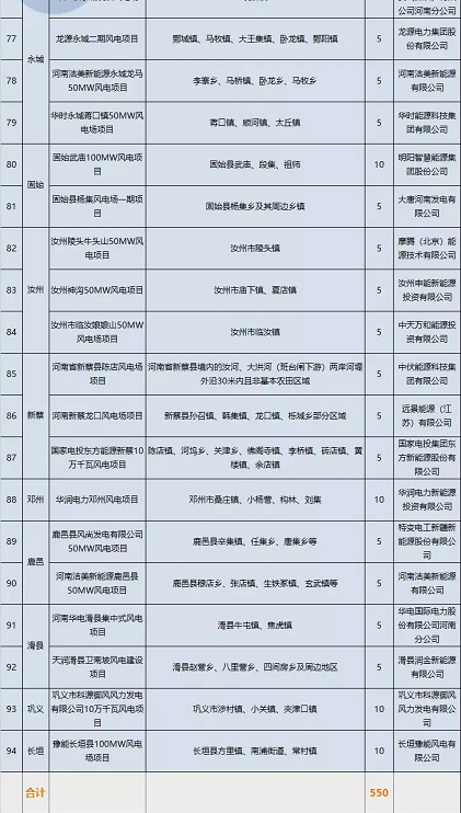 2018年:公示94個風電項目,總裝機550萬千瓦