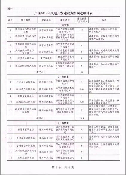 2018年:廣西壯族自治區(qū)風電2017年至2020年新增建設(shè)規(guī)模為500萬千瓦,2018年廣西壯族自治區(qū)擬新增核準項目容量160萬千瓦。2018年度廣西風電建設(shè)45個候選風電項目、總計269.4萬千瓦。