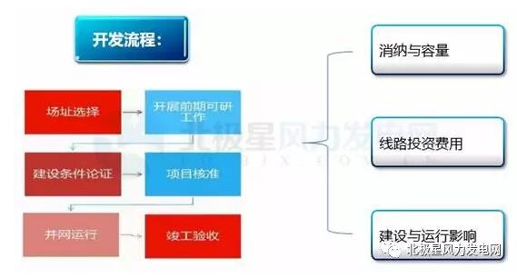 風(fēng)電場選址成功便完成了項目前期的重要一步。分散式風(fēng)電開發(fā)流程跟傳統(tǒng)風(fēng)電開發(fā)一樣,在過程中需要關(guān)注三個大方向:第一是消納與容量。第二是線路投資和費用,第三是建設(shè)和運行影響。對于風(fēng)電開發(fā)商來說,其后又涉及許多具體因素的綜合考量。