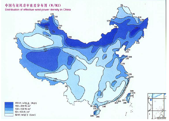 我國風(fēng)能資源豐富的地區(qū)主要集中在北部、西北和東北的草原、戈壁灘以及東部、東南部的沿海地帶和島嶼上。這些地區(qū)冬春季節(jié)風(fēng)速高,雨水少;夏季風(fēng)速小,降雨多,風(fēng)能和水能具有非常好的季節(jié)補(bǔ)償。另外在中國內(nèi)陸地區(qū),由于殊的地理?xiàng)l件,有些地區(qū)具有豐富的風(fēng)能資源,適合發(fā)展風(fēng)電。