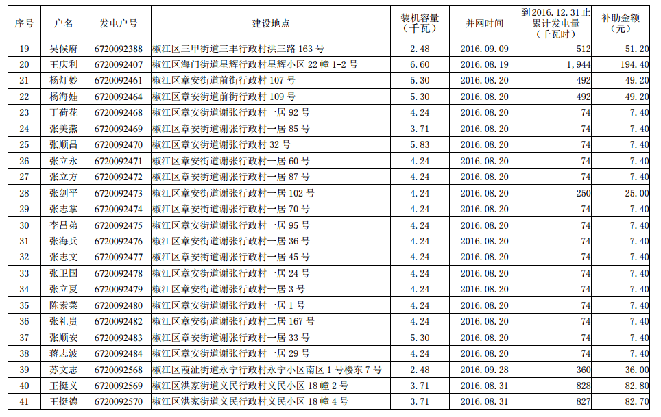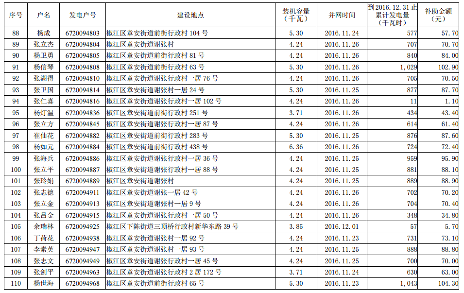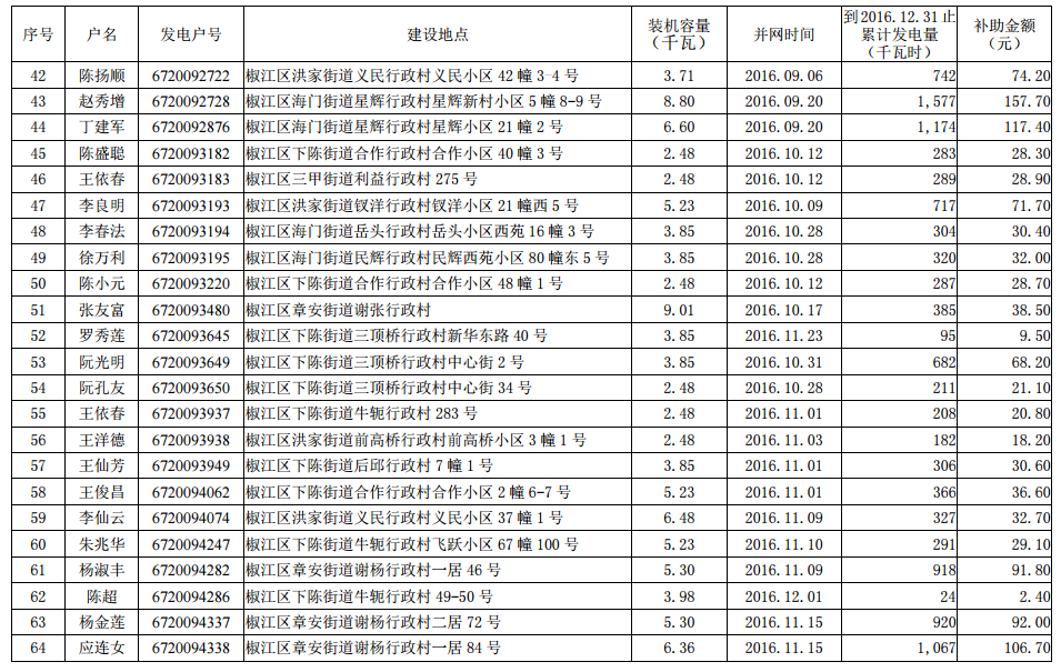 2016年底前市本級(jí)個(gè)人分布式光伏發(fā)電擬補(bǔ)助資金項(xiàng)目名單