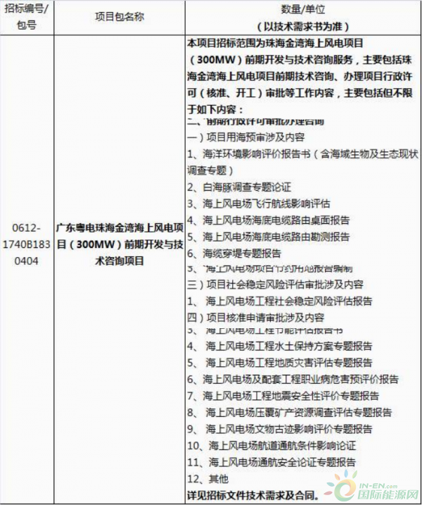 2.3招標(biāo)范圍:珠海金灣海上風(fēng)電項目(300MW)前期開發(fā)與技術(shù)咨詢服務(wù),詳細(xì)內(nèi)容請參閱招標(biāo)文件。投標(biāo)人必須對投標(biāo)的全部內(nèi)容進(jìn)行投標(biāo)報價,如有缺漏將導(dǎo)致投標(biāo)無效。