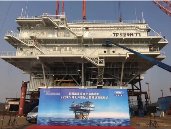 11月3日,振華重工為海安龍?jiān)春I巷L(fēng)力發(fā)電有限公司建造的龍?jiān)唇K蔣家沙300MW海上風(fēng)電項(xiàng)目220kv海上升壓站上部模塊在長興分公司舉行發(fā)運(yùn)儀式。振華重工副總裁周崎,海安龍?jiān)春I巷L(fēng)力發(fā)電有限公司副總經(jīng)理唐永衛(wèi)出