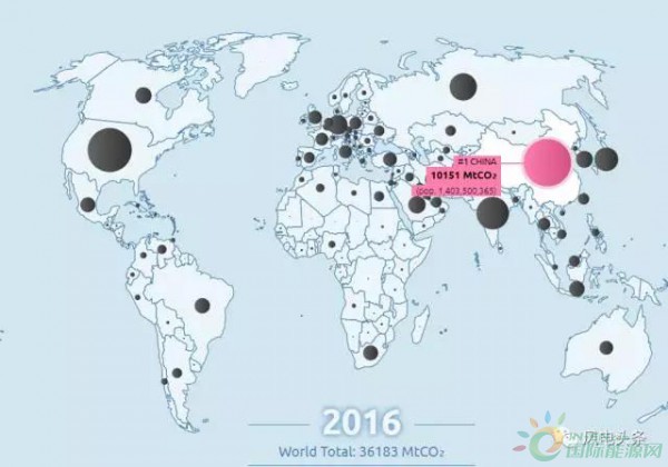 2016年中國(guó)及全球碳排放情況(數(shù)據(jù)來(lái)源于“全球碳計(jì)劃”)