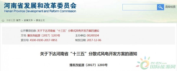 關(guān)于下達河南省“十三五”分散式風(fēng)電開發(fā)方案的通知