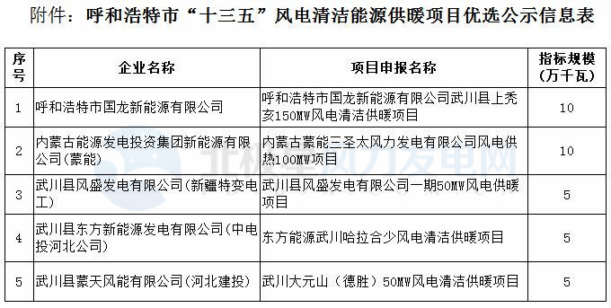 呼和浩特市發(fā)改委公示5個(gè)風(fēng)電清潔供暖優(yōu)選項(xiàng)目