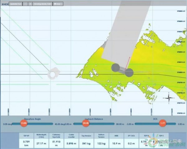 該海纜監(jiān)測系統(tǒng)固定在船只上,可實(shí)時(shí)監(jiān)測海纜的位置狀態(tài)和完整性,并可以把實(shí)際海纜的埋藏路徑和設(shè)計(jì)路徑進(jìn)行比較。