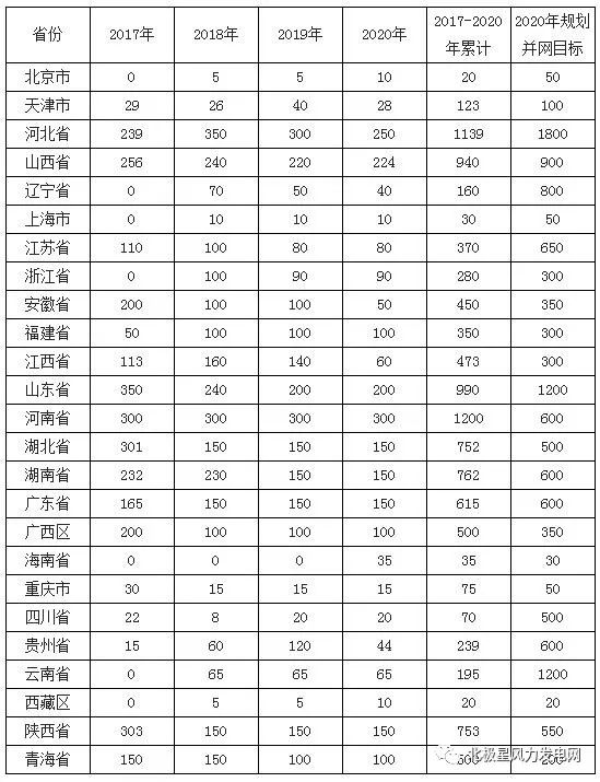 2017~2020 年風(fēng)電新增建設(shè)規(guī)模方案(萬千瓦)