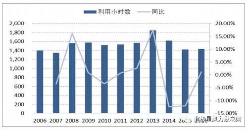 2006~2016 年風(fēng)電利用小時(shí)數(shù)