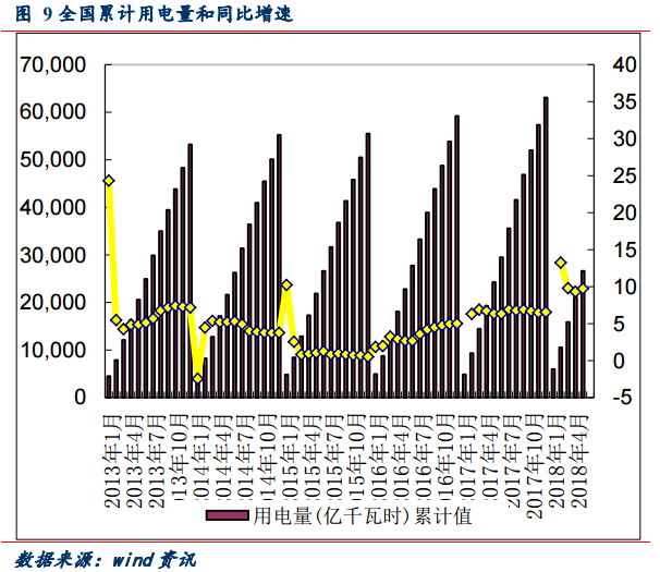 1-5 月份,全國全社會(huì)用電量 26628 億千瓦時(shí),同比增長 9.7%,增速比上年同期提高 3.4 個(gè)百分點(diǎn)。