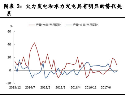 二是,煤炭價(jià)格下行或者水電對火電替代作用增強(qiáng)的時(shí)候,發(fā)電企業(yè)也往往不主動兌現(xiàn)長協(xié)合同。首先,當(dāng)發(fā)電企業(yè)可以在市場上采購到比長協(xié)合同價(jià)格低的煤炭時(shí),發(fā)電企業(yè)通常會放棄長協(xié)合同,轉(zhuǎn)而采購市場煤。其次,當(dāng)電力市場波動,特別是火電企業(yè)發(fā)電量下降時(shí),煤炭的使用量就會下降,這種現(xiàn)象在水電對火電產(chǎn)生替代作用時(shí)表現(xiàn)最為突出(圖表3)。每年當(dāng)西南地區(qū)雨水充沛時(shí),火電會給水電讓路,火力發(fā)電企業(yè)煤耗不足,自然不愿保障長協(xié)合同接貨。