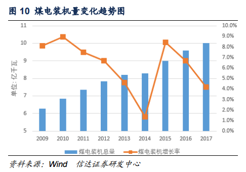 我們預(yù)計,2018年煤電裝機總量約為10.4億千瓦,裝機增速大概率不會超過4%,未來煤電裝機總量將繼續(xù)增加,但裝機增速將明顯放緩。
