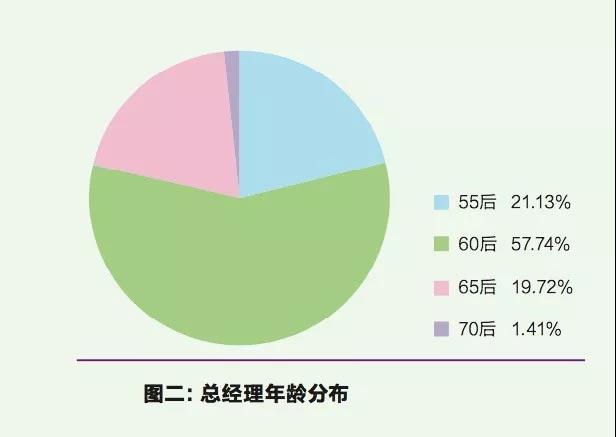 其中,“一把手”(87人)平均為57.77歲,與兩年前基本持平,較2013年增長(zhǎng)0.66歲;總經(jīng)理(71人)平均年齡55.28歲,較2016年增長(zhǎng)0.73歲,較2013年增長(zhǎng)兩歲多。