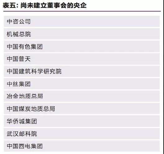 2016年初,尚未建立董事會(huì)的央企達(dá)到25家。兩年的時(shí)間,國(guó)資委把這一數(shù)字降到了11家(見(jiàn)表五)。