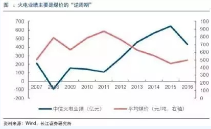據(jù)了解,在火電企業(yè)變動(dòng)成本中,燃料成本占比超過(guò)50%,因此,煤價(jià)是影響火電企業(yè)的關(guān)鍵因素。長(zhǎng)江證券的調(diào)研結(jié)果顯示,火電行業(yè)的業(yè)績(jī)主要是煤價(jià)的“逆周期”。