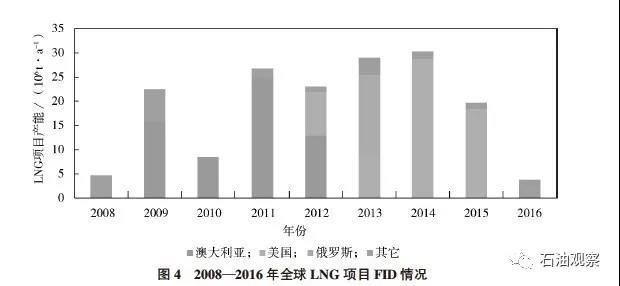 自2011年日本福島事件之后,全球LNG市場開始不斷加大對市場供不應(yīng)求的預(yù)期,每年做FID的項(xiàng)目液化能力平均達(dá)到2500萬t,并于2014年達(dá)到峰值。其中2009—2012年高油價(jià)時(shí)期FID的項(xiàng)目主要集中在澳大利亞,但在當(dāng)時(shí),與澳大利亞出口項(xiàng)目掛鉤傳統(tǒng)油價(jià)的計(jì)價(jià)方式相比,美國LNG項(xiàng)目憑借較低的天然氣成本價(jià)加液化費(fèi)用和運(yùn)輸成本的計(jì)價(jià)方式顯得頗具吸引力。