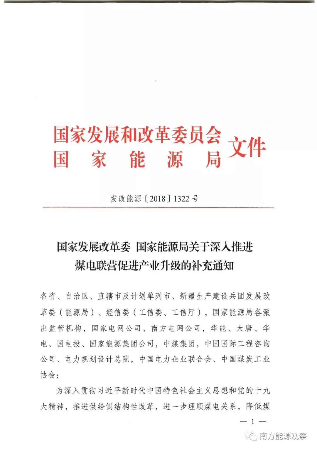 發(fā)改委、能源局關(guān)于深入推進煤電聯(lián)營促進產(chǎn)業(yè)升級的補充通知