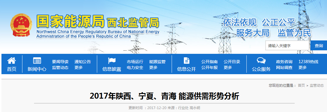 近日,國家能源局西北監(jiān)管局發(fā)布了2017年陜西、寧夏、青海能源供需形勢分析,截至11月底,陜、寧、青三?。▍^(qū))電網運行總體平穩(wěn),發(fā)、用電量穩(wěn)步增長,陜西、寧夏電力電量總體平衡有余,青海通過省際間交易購電