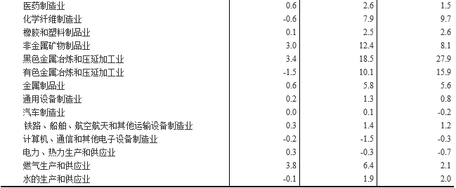 工業(yè)生產(chǎn)者購進(jìn)價格中,建筑材料及非金屬類價格環(huán)比上漲2.4%,黑色金屬材料類價格上漲1.7%,燃料動力類價格上漲1.5%;有色金屬材料及電線類價格下降0.6%。