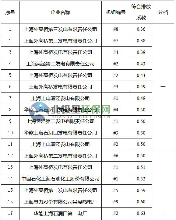 2017年度上海市燃煤發(fā)電機(jī)組環(huán)保排序已經(jīng)公布。
