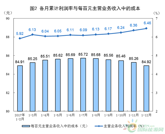 2017年,規(guī)模以上工業(yè)企業(yè)實(shí)現(xiàn)主營(yíng)業(yè)務(wù)收入116.5萬億元,比上年增長(zhǎng)11.1%;發(fā)生主營(yíng)業(yè)務(wù)成本98.9萬億元,增長(zhǎng)10.8%;主營(yíng)業(yè)務(wù)收入利潤(rùn)率為6.46%,比上年提高0.54個(gè)百分點(diǎn)。