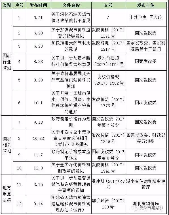2017年度天然氣領(lǐng)域新出臺政策法規(guī)(部分)