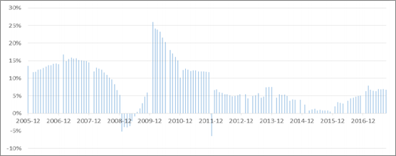 在煤電企業(yè)生產(chǎn)成本中,燃料成本一般占 60%~70%,煤電企業(yè)的盈利狀況與煤價的周期性波動密切相關。2016 年以來,煤 炭價格回升,尤其是 2016 年四季度以來,煤價快速上漲,煤炭行業(yè)利潤呈恢復性增長。2017 年,隨著需求改善、去產(chǎn)能繼 續(xù)推進,以及主動補庫存周期對價格的支撐,我們預計 2018 年煤炭價格將全年保持高位震蕩態(tài)勢。
