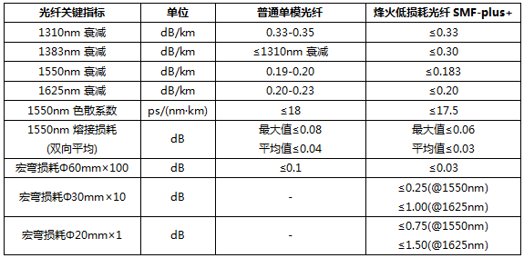 表1 普通單模光纖與低損耗光纖參數(shù)對比