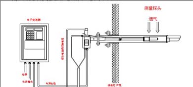 這種測(cè)量是直插在線式測(cè)量,也即測(cè)量電池位于被測(cè)煙氣之中,探頭頂端處于煙道當(dāng)中三分之一處的位置。