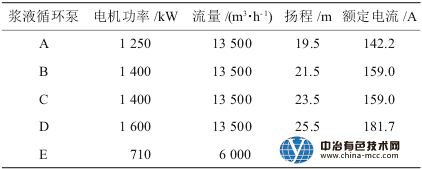 根據《山西省人民政府辦公廳關于推進全省燃煤發(fā)電機組超低排放的實施意見》(晉政辦發(fā)[2014]62號、《山西省現(xiàn)役燃煤發(fā)電機組超低排放改造提速3年推進計劃》等要求,全省現(xiàn)役單機300 MW及以上燃煤發(fā)電機組2017年底前完成超低排放改造任務。在基準氧含量6%條件下,SO2排放濃度低于35mg/m3。由于該電廠原有脫硫裝置無法滿足新的排放要求,因此進行了超低排放改造。經過改造后,每臺機組脫硫系統(tǒng)配置4臺流量為13500m3/h的漿液循環(huán)泵加1臺設計流量為6000m3/h的輔助漿液循環(huán)泵,吸收塔內設置4層噴淋層加2層輔助噴淋層。各漿液循環(huán)泵的設計參數如表1所示。