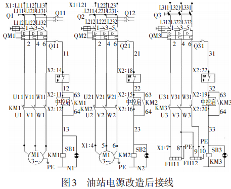但隨著火力發(fā)電廠布局地逐步優(yōu)化,結構越來越緊湊,保安電源與重要輔機的距離越來越近,電纜的絕緣水平、電纜橋架、電纜鋪設的工藝及現(xiàn)場文明施工的管理水平也在不斷地提高,油站電源電纜故障的機率明顯下降;保安電源所在配電室環(huán)境很好,且每個保安段都有3路電源,能夠自動切換,電源的可靠性很高。且傳統(tǒng)的設計存在較多的隱患,為提高輔機油站系統(tǒng)運行的可靠性,將重要輔機兩臺油泵電源均由保安段直接接引,采用一對一的控制方式。將各油泵的動力回路和控制回路完全分離,互不影響,使油站運行的可靠性大大提高。