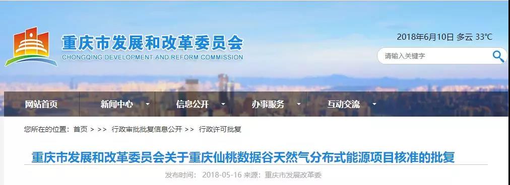 重慶仙桃數(shù)據(jù)谷天然氣分布式能源項目核準批復