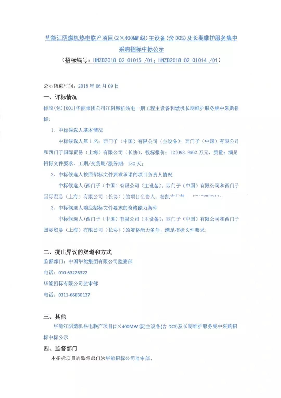 中標(biāo)價(jià)約121098萬元!西門子中標(biāo)華能江陰燃機(jī)熱電項(xiàng)目