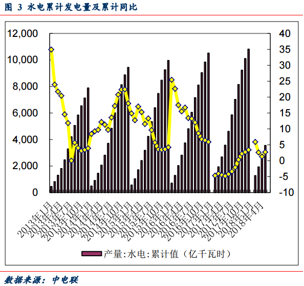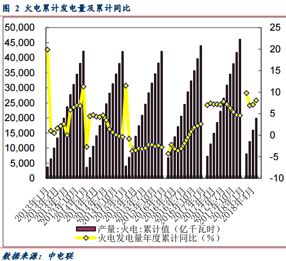 1-5月份,全國規(guī)模以上電廠發(fā)電量26361億千瓦時,同比增長8.50%,增速比上年同期提高 2.1 個百分點。其中:全國規(guī)模以上電廠火電發(fā)電量 19914 億千瓦時,同比增長 8.1%,增速比上年同期提高 0.9 個百分點;水電發(fā)電量 3553 億千瓦時,同比增長 2.70%,增速比上年同期提高 7.5 個百分點。